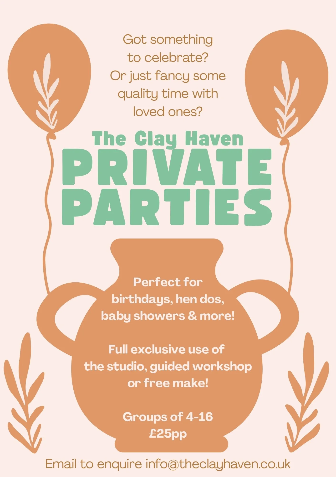 If you're planning a special birthday party, hen do, baby shower or that long overdue quality time with friends a pottery experience at The Clay Haven is the perfect setting to get together and create.